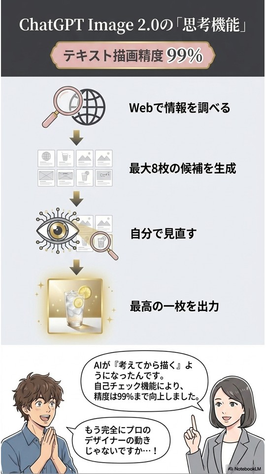 日本語の長文テキストも、曲線の文字も、インフォグラフィックの中の細かい説明文も、「プロが作ったみたい」という評判になっています。