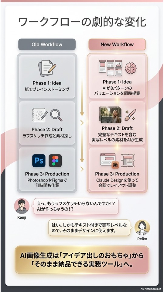 その結果、AI画像生成は「アイデア出しや参考素材を作るおもちゃ」という位置づけにとどまっていました。