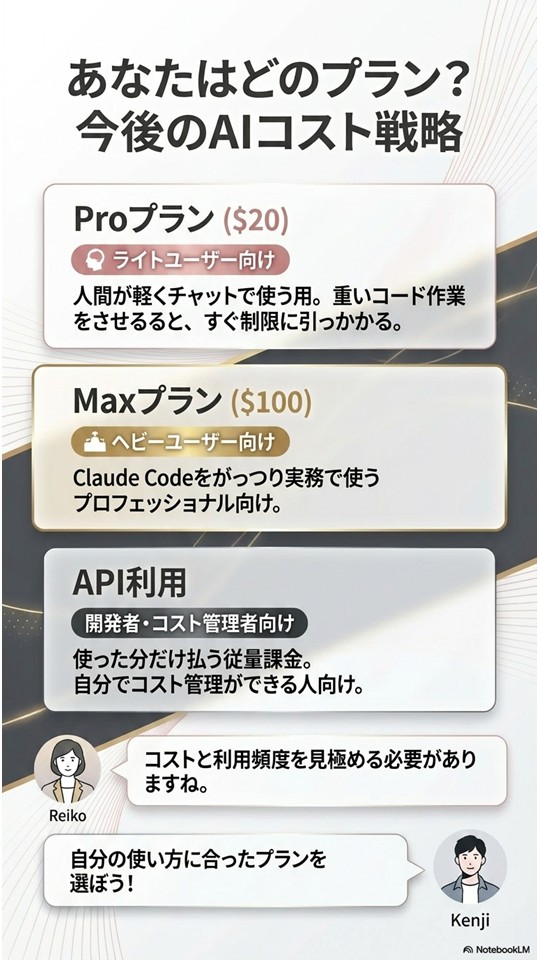 そしてClaude Code騒動が示したのは、「そんな強力な相棒を使い続けるには、これまでの料金体系では成り立たなくなってきている」という現実です。