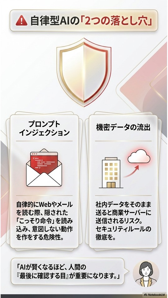 - 重要な作業は最後に必ず人間が確認する習慣を忘れずに